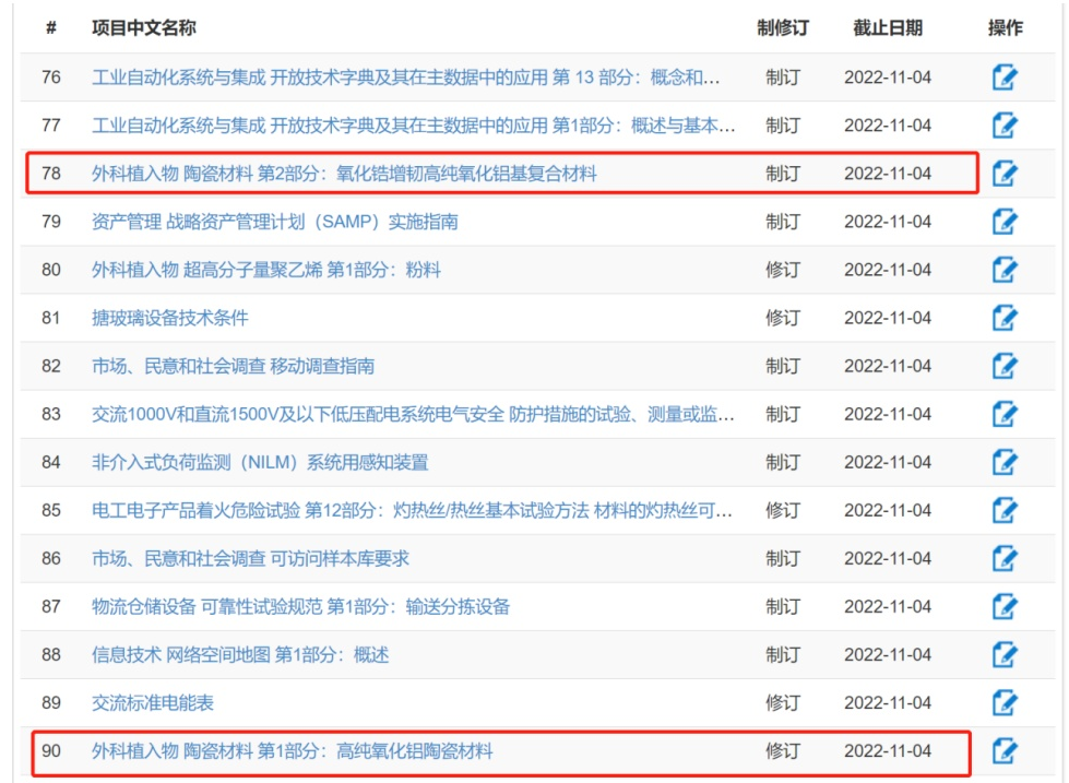 氧化鋁生物陶瓷、ZTA等182項(xiàng)擬立項(xiàng)推薦性國家標(biāo)準(zhǔn)項(xiàng)目公開征求意見